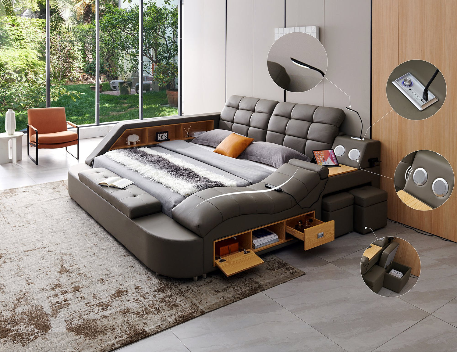 Introducing the Ultimate Coffee Table with Built-in Fridge, Bluetooth Speakers, and Wireless Chargers