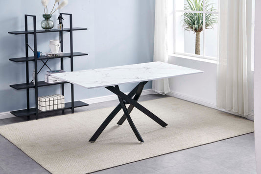 DT90 Printed Marble/ Metal Top Dining Table