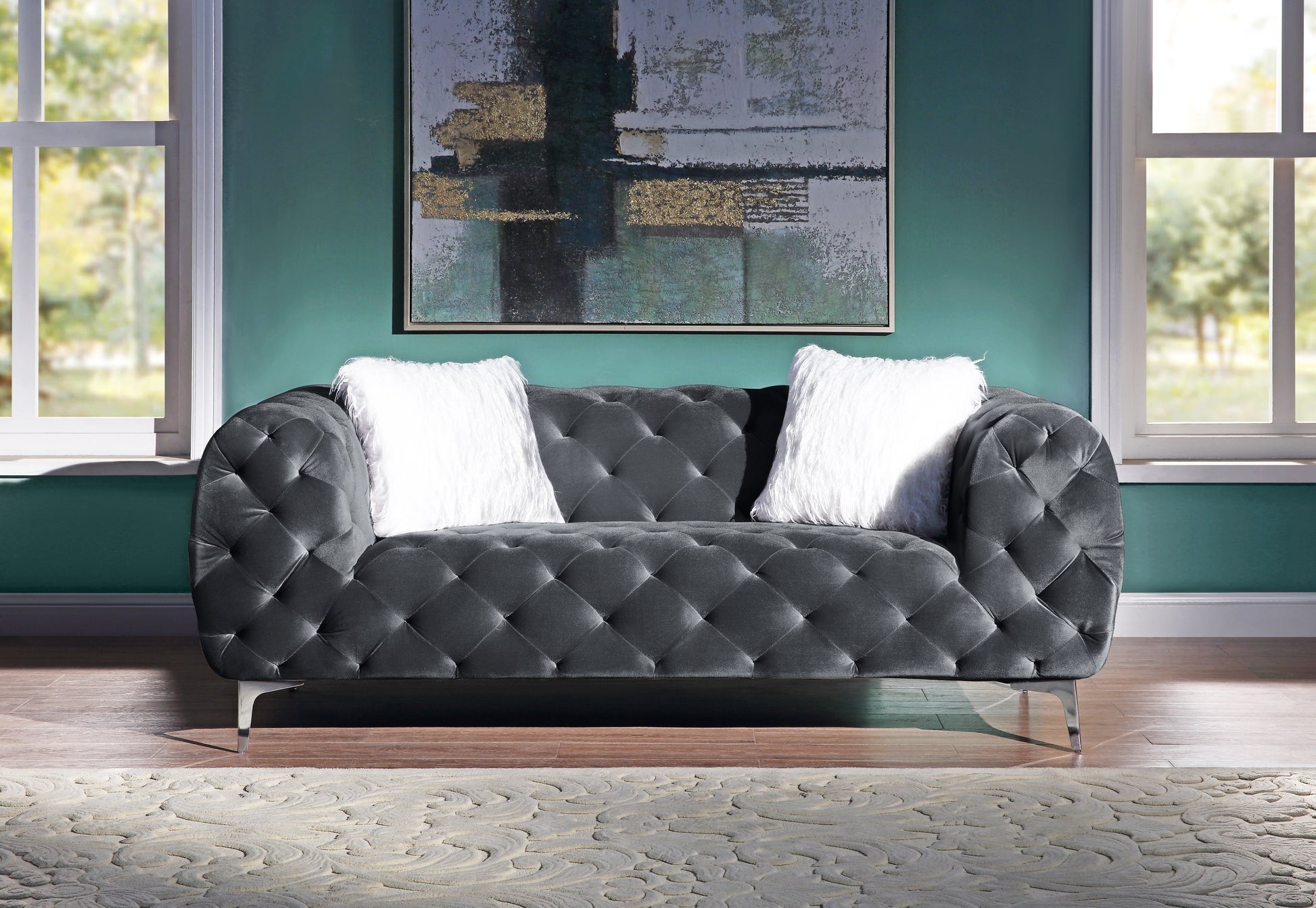 Luxurious Velvet Upholstery: Soft 100% polyester velvet available in black, blue, or grey.