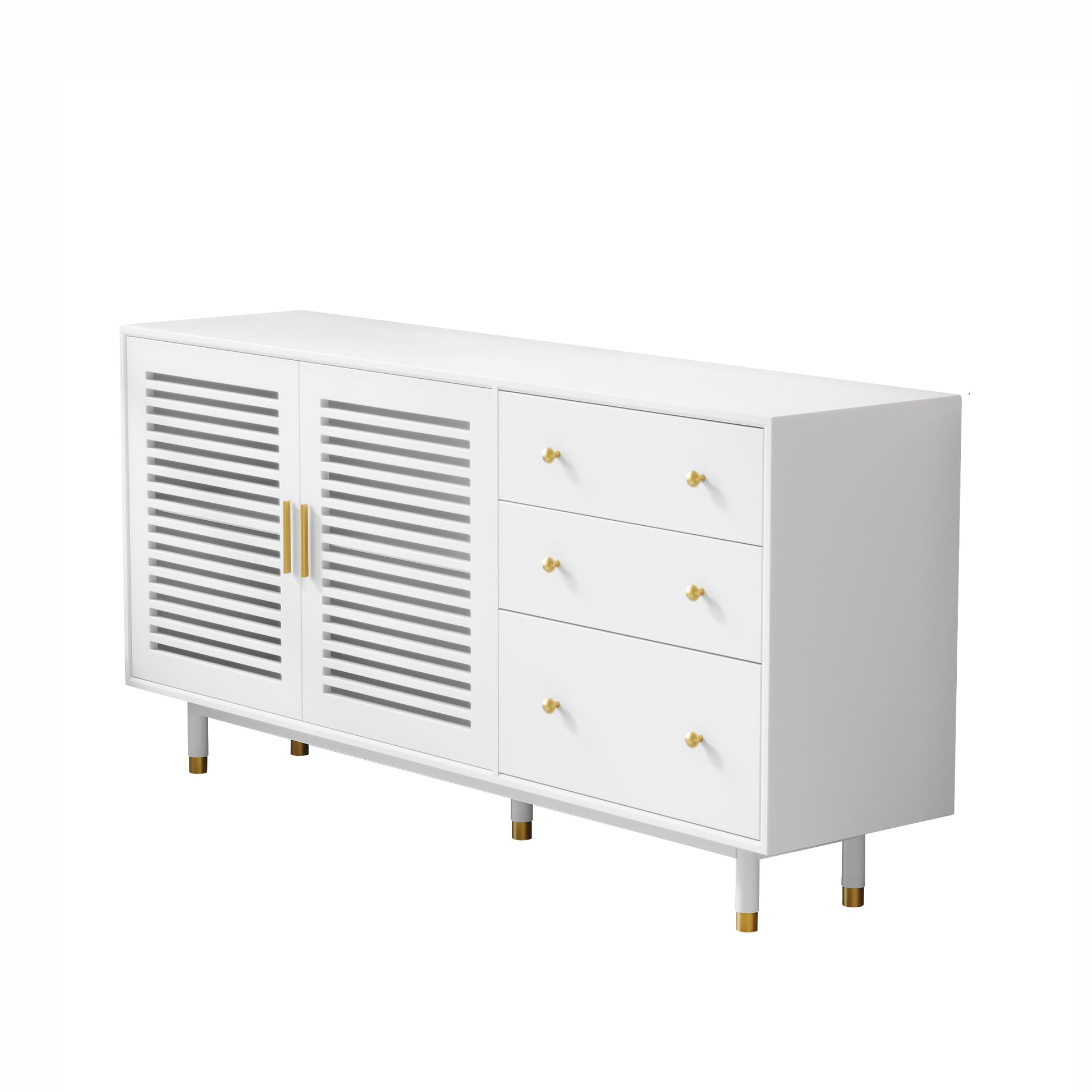 Upgrade your home with the stylish and versatile Modern Multifunction Cabinet. Designed with contemporary flair, this cabinet combines plywood construction with a sleek white lacquer finish and sturdy wooden legs, offering both functionality and refined aesthetics. Measuring 65"L x 15.4"D x 31.5"H, it provides ample storage for a variety of items, making it perfect for the living room, bedroom, or hallway. The clean, modern design seamlessly integrates into different décor styles, elevating the ambiance of your home. While some assembly is required, the result is a stunning and practical addition to any room.