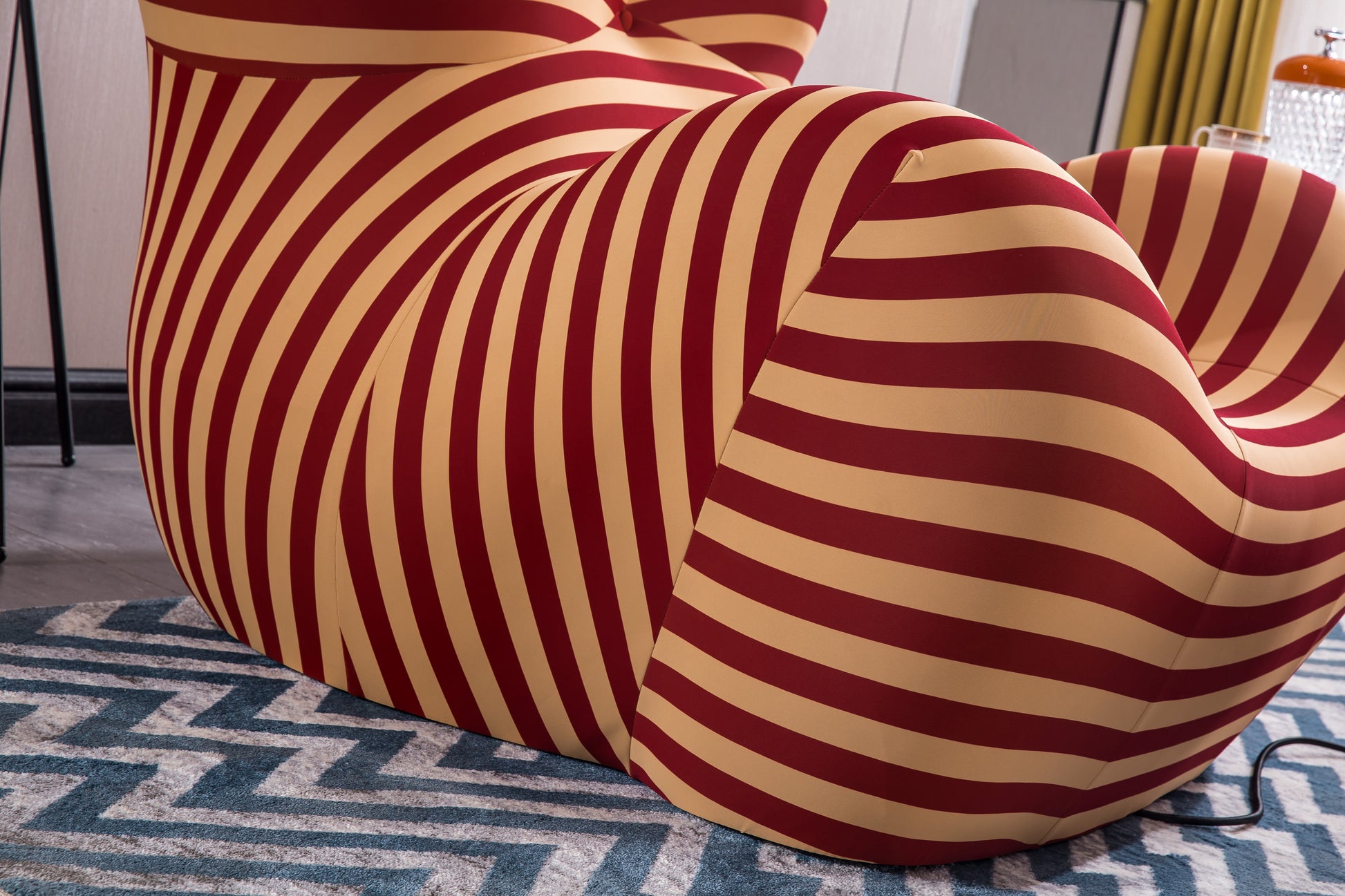 Add bold style and comfort to your space with this Barrel Chair and Ottoman, featuring striking striped patterns in Blue & Yellow or Red & Yellow. Made from durable 100% polyester fabric and filled with one-piece foam, it offers both coziness and long-lasting use. The spacious design provides plenty of room for relaxation, and with no assembly required, it’s ready to use right away.